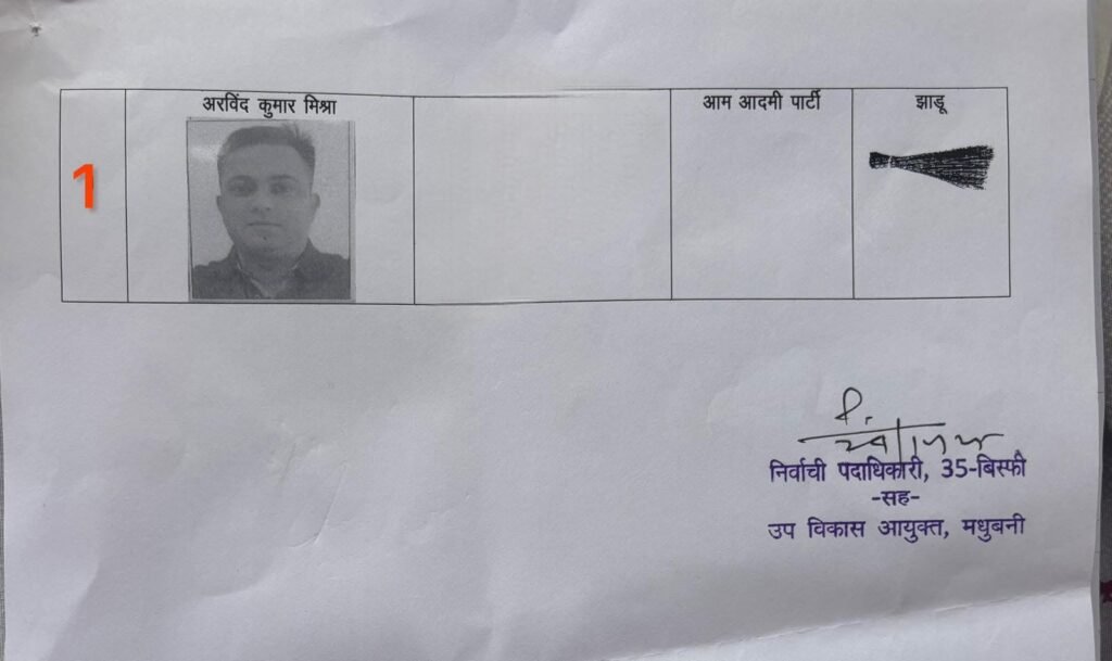In the 2025 Bihar Vidhan Sabha Elections, Arvind Kumar Mishra represents the Aam Aadmi Party as the official candidate from Constituency No. 35 – Bisfi, District Madhubani.