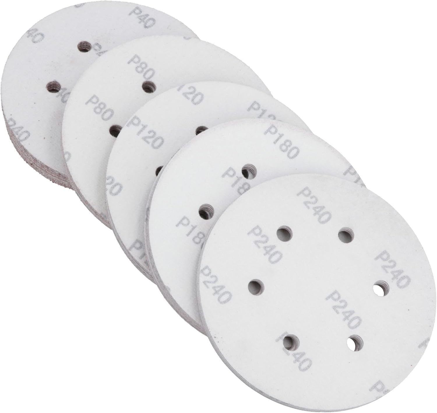 Professional sanding pads for commercial or occasional use Hook and loop sanding discs suitable for the majority of sanders 150mm sanding discs This listing is for 50 hook and loop sanding discs Mixed grit sanding pads Designed for the automotive refinishing industry Suitable for use on wood, metal, most fillers and paint The discs are all hook and loop discs for easy attachment and removal 6 hole design eliminates clogging and dust extraction 6 hole design also reduces the amount of dust which means it can no longer collect in lumps on the abrasive surface Eliminating the problem of dust clogging which causes defects in the sanding surface Mixed grip ranging from 40 - 240 grit so suitable for a number of uses SET INCLUDES THE FOLLOWING 10 x 150mm sanding discs - 40 grit 10 x 150mm sanding discs - 80 grit 10 x 150mm sanding discs - 120 grit 10 x 150mm sanding discs - 180 grit 10 x 150mm sanding discs - 240 grit