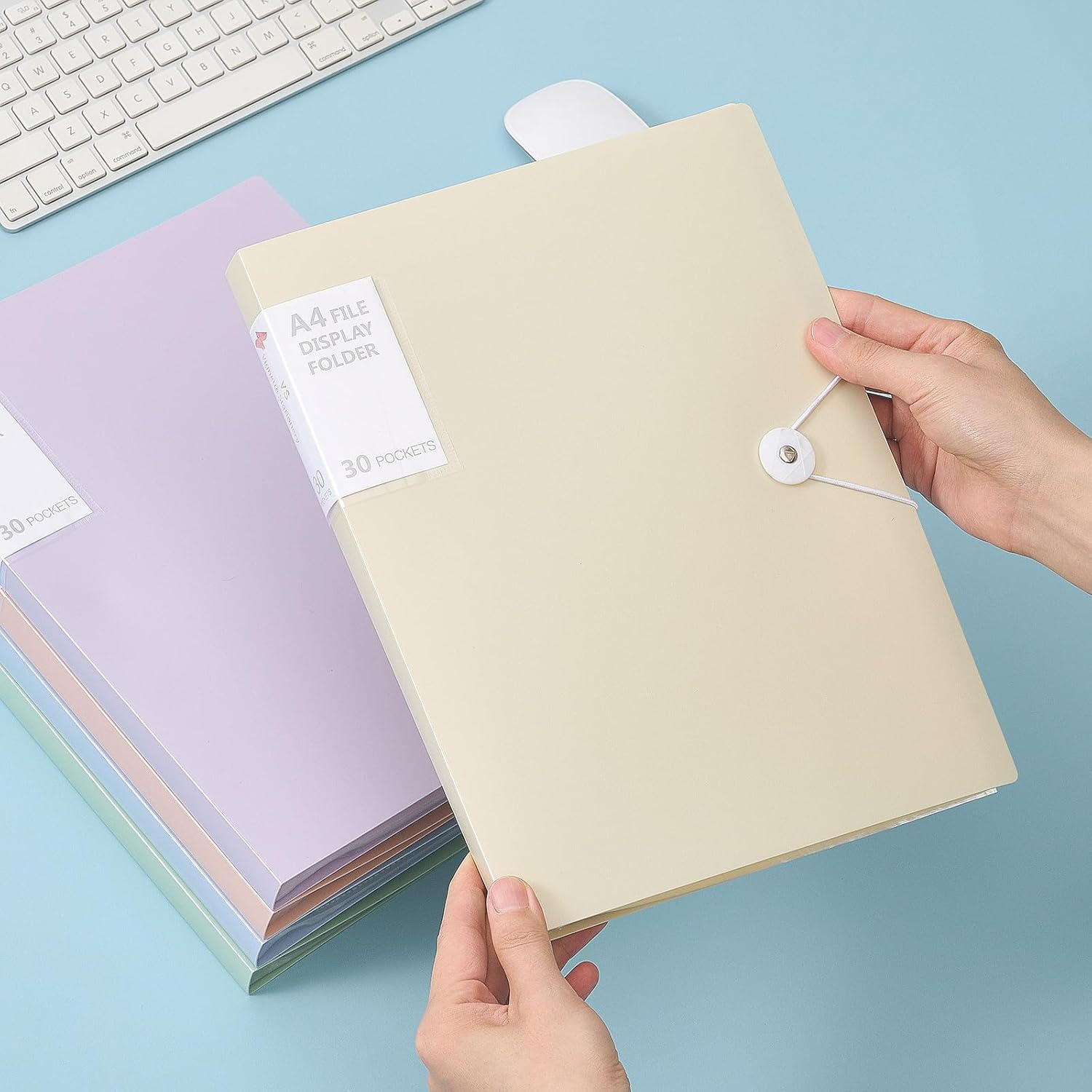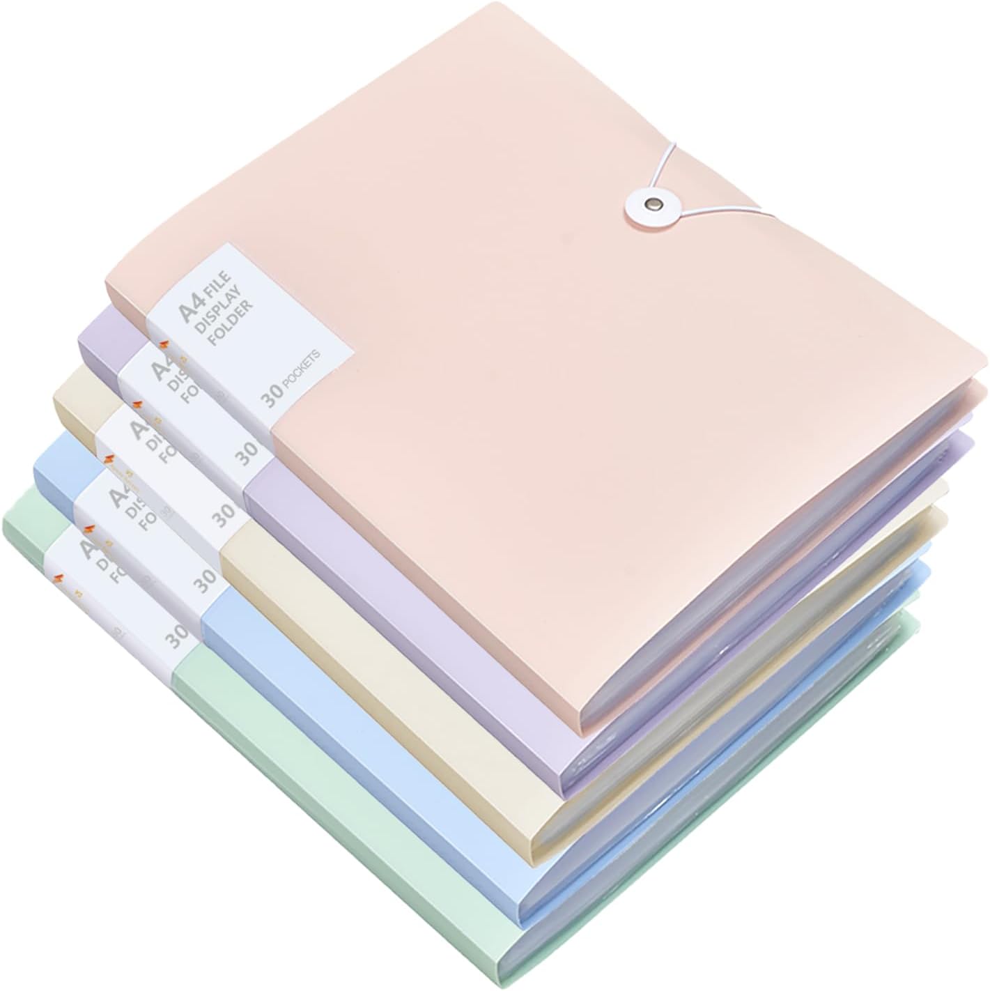 5X A4 Size Display Presentation Folders 30 Pockets Clear Sleeves Pastel Colours Durable Cover School Office Business Study Essentials Document Storage Organiser 5 Pack