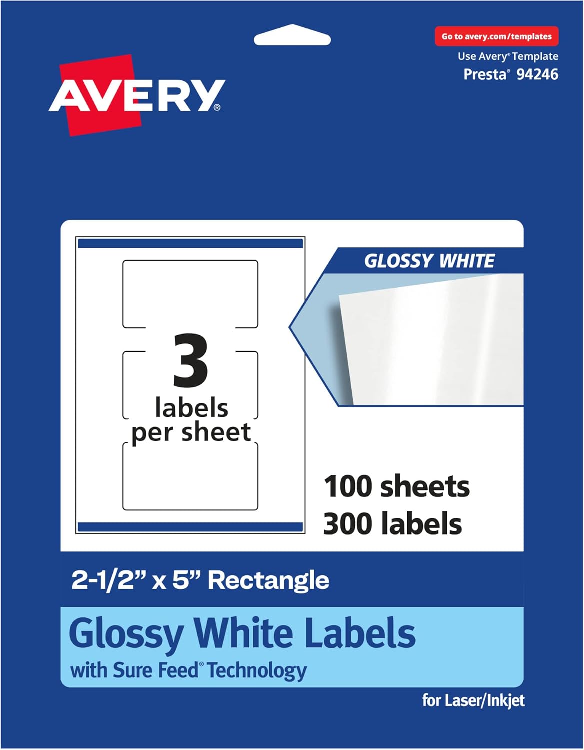 Add a beautiful shine to mailing labels, product labels, labels for food containers, soap labels, candle jar labels, body scrub labels and more with Avery 2.5" x 5" Glossy White Rectangle Labels. Avery rectangle labels are carefully constructed with patented features to provide the best results. Sure Feed technology prevents jams or smudges by creating a more reliable feed through your printer. The print-to-the-edge layout lets you print beautiful full-bleed designs that fill each blank sticker to the edge. These glossy white rectangle labels are compatible with both laser and inkjet printers so that you can effortlessly print bold, bright colors and clear, sharp text. The sturdy permanent label adhesive makes sure that your labels stick and stay to a variety of surfaces without peeling, curling or falling off. Easily customize labels with your own designs, art, symbols and messaging by using the free label templates and designs in Avery Design & Print. Whether you're creating product labels for a small business, custom labels for classrooms or professional labels for the office, Avery glossy white labels will add a brilliant and beautiful shine to any project.