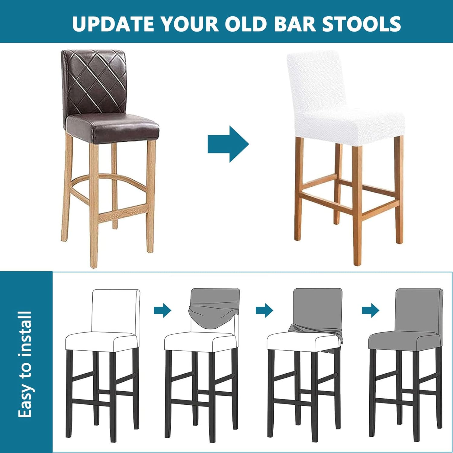 Their classic and minimalist design instantly changes the look of your chairs, giving your dining area a whole new appearance. Name: Cover for bar stools Material: Polyester and Spandex Color: As picture Size: Back Height: 30-46cm(11.8-18.1in) Back Width: 35-51cm(13.8-20.1in) Seat Width: 35-51cm(13.8-20.1in) Seat Thickness: 2.5-10cm(1-3.9in) Package Includes: 2 pack Stool Covers Wide Application: Counter stool slipcover can be used in kitchen, bedroom, living room decoration, restaurant, cafe, studio, office or hotel, meeting, party, Christmas, wedding reception, celebration, ceremony, etc. Please Note: 1. Package includes only the chair cover does not include the chair. 2. Due to the different monitor and light effect, the actual color of the item might be slightly different.