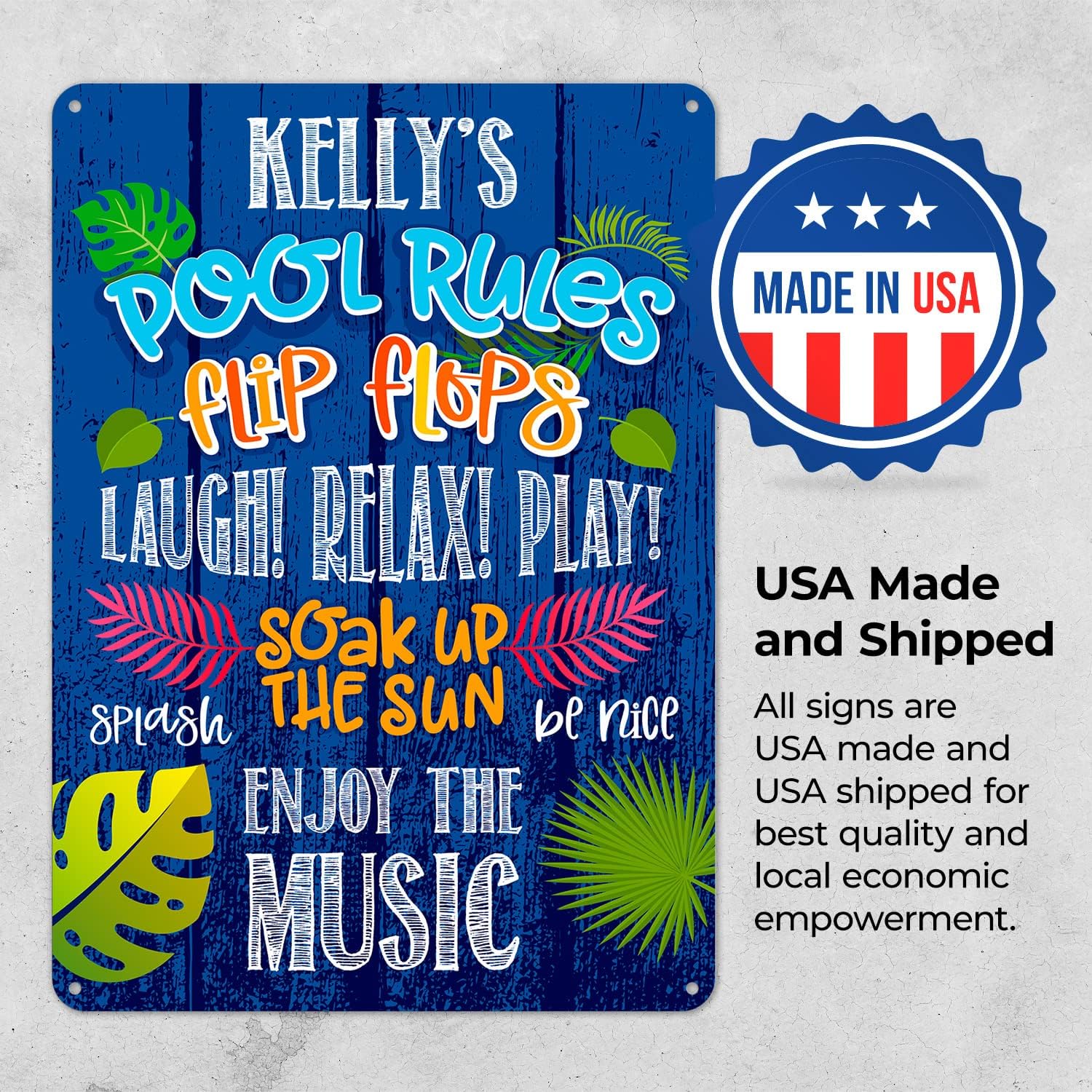 Sigo Signs - Custom Blue Pool Rule Signs, Personalized Sign for Pool, for Family, Friends, Him and Her Sign, 10x14 Inches, Rust Free .040 Aluminum, Fade Resistant, Made in USA by Sigo Signs