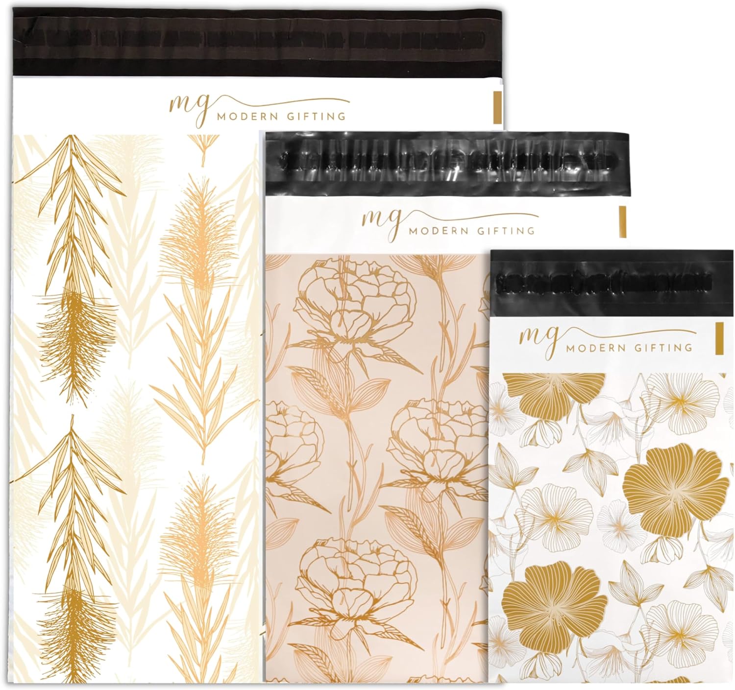 ★ Eco-friendly ★ Eye-catching ★ Premium Poly Mailers ★Wondering if your shipping mailer will be the right size for your product? Take the guessing game out with 3 different designs and sizes included so you can be ready to fulfill any order - big, small, and everything in between.6” x 9” - Fits socks, face-masks, baby clothes, underwear, cosmetics, jewelry9” x 12” - Fits 1-2 shirts, pants, active/leisure wear, pajamas, bags/totes, soft toys12” x 15” - Fits 3-4 shirts, pants, dress, jacket, sweatshirt, sandals/flats, baby blanketAn eco-smart solution to plastic pollutionOur fully recyclable poly mailers are specially made with sustainable D2W material.At Modern Gifting our goal is simple - to make sure your customer's unboxing experience is fun and memorable while also keeping the planet in mind. When it comes to sustainable shipping in style, we'd love to be your partner along the way ♥Note: Mailers have NO BUBBLE PADDING. Thickness is 2.35 mil. Recycle at participating retail store drop-offs. Colors may vary due to device screens and lighting differences.