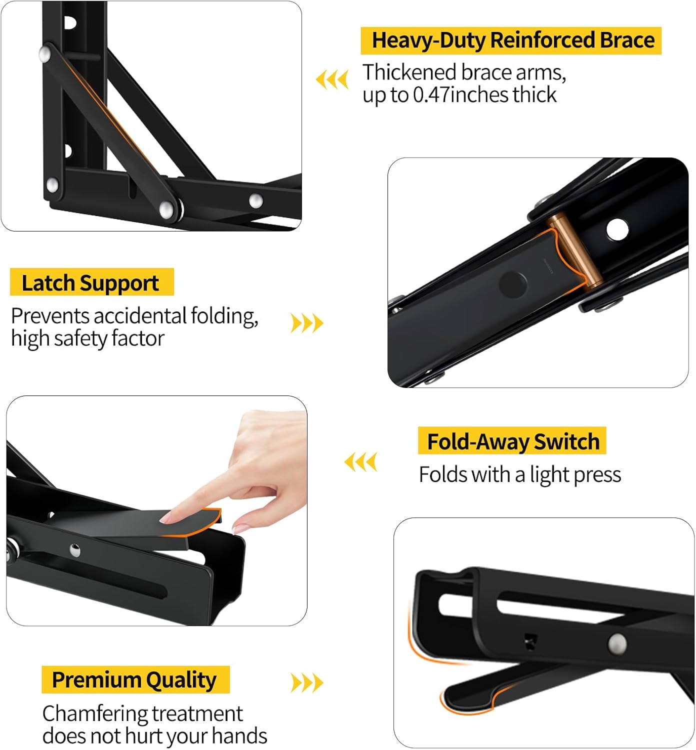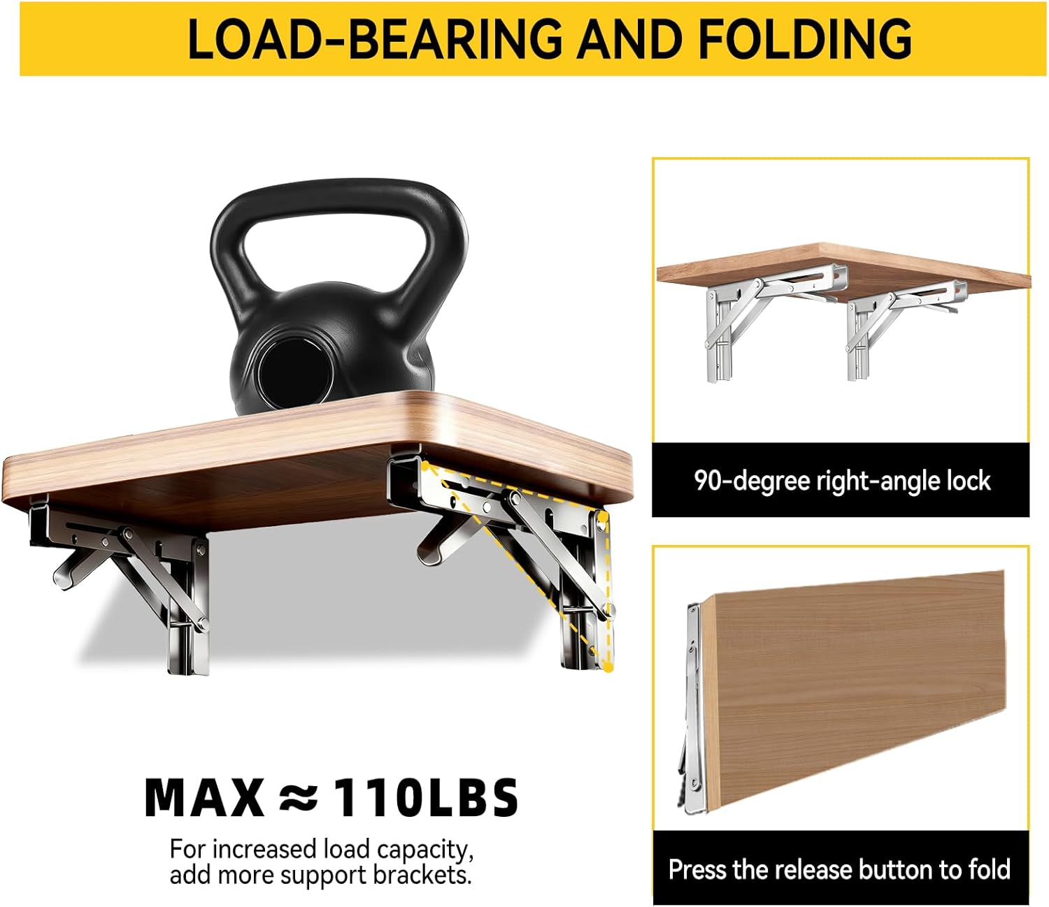 Maximize space and add smart functionality to your home or workspace with our Folding Shelf Brackets. Crafted from premium 304 stainless steel, these collapsible shelf brackets offer outstanding durability and corrosion resistance. The brushed finish adds a sleek modern look while withstanding humid or outdoor environments. The triangle locking structure supports up to 500 lbs per pair, making them perfect for building fold-down tables, wall-mounted workbenches, or retractable RV countertops. When not in use, the bracket folds down effortlessly, giving you more floor space and a clutter-free area. Ideal for small kitchens, workshops, RVs, laundry areas, and tiny homes. Installation is fast and simple with included screws and anchors. Suitable for wood, brick, or cement surfaces. These folding wall brackets are a must-have for any DIY or space-saving project. ✅ Perfect for: folding shelf brackets | wall mounted table bracket | collapsible table hinge | stainless steel folding bracket | heavy duty shelf support