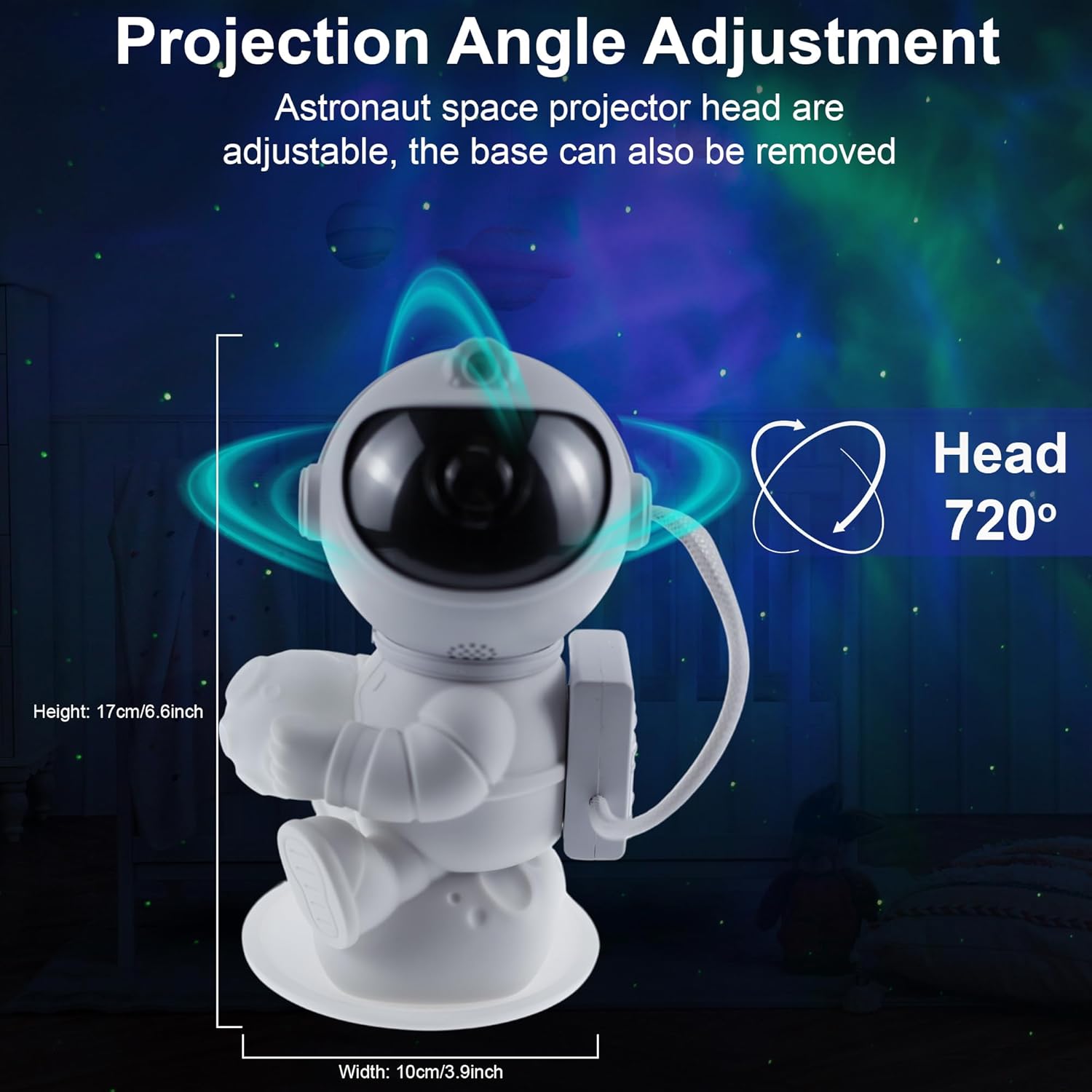 | Additional Features | Multiple Nebula Modes, Removable Head, Music & Bluetooth Speaker, Timer Settings, Panel Buttons, Remote Control |